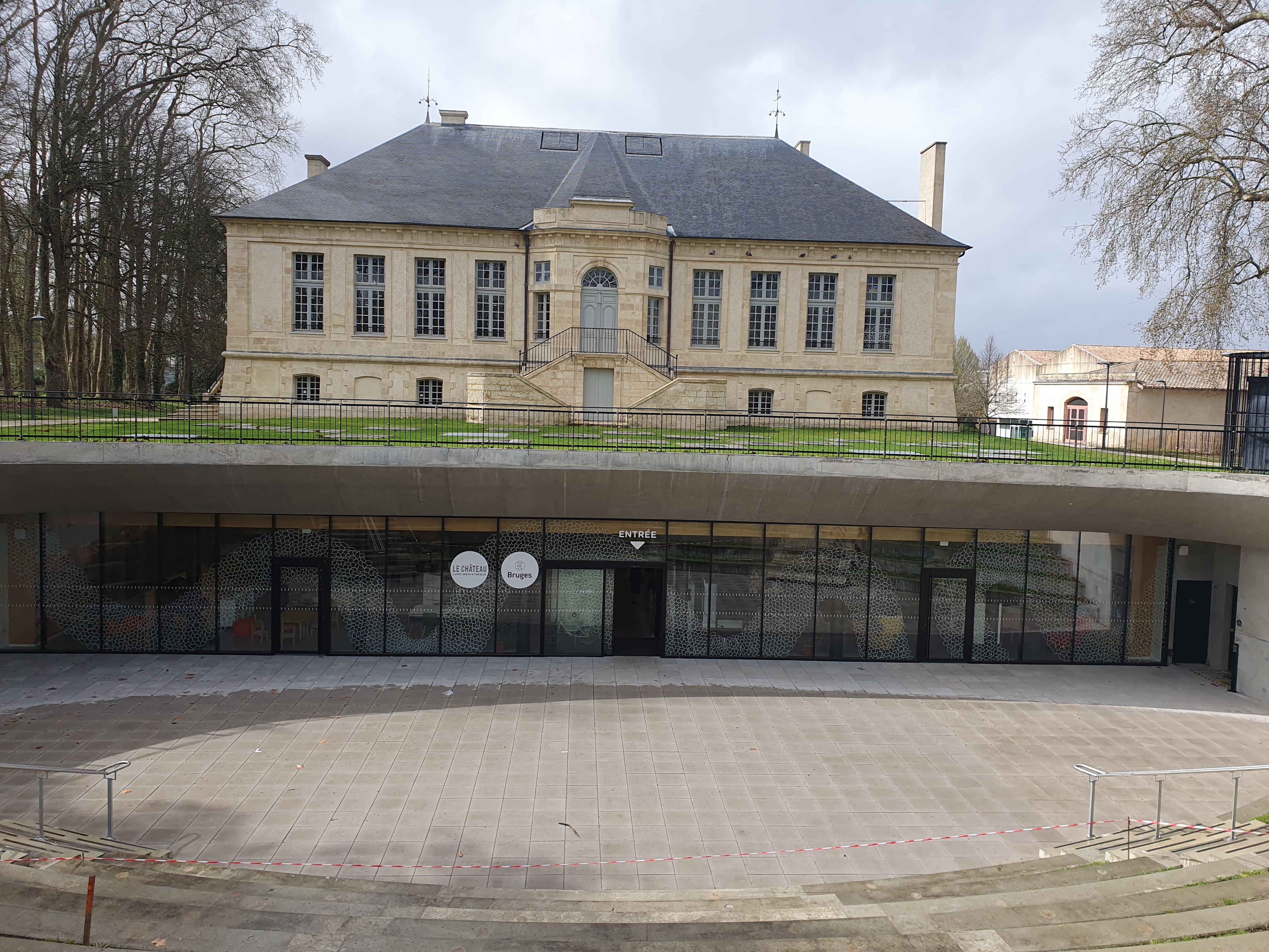 Ne boudons pas notre plaisir d avoir enfin à Bruges un outil pédagogique, ludique, multi canal, litteraire avec l arrivée de cette nouvelle ludo-médiathèque, accompagné par son théâtre de verdure. Petits et grands vont pouvoir s en donner à cœur joie : livres dvd, jeux de société, espace informatique et jeux vidéos. belle réussite de l architecte avec ce château entièrement rénové. Une visite s' impose ;)